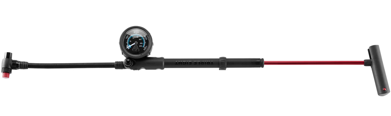 Cela vous permet d’adapter la fourche et l’amortisseur de la suspension à vos souhaits. La tête de la valve Schrader brevetée de la pompe à chocs TRIPLE EIGHT empêche l’air de s’échapper lorsqu’elle est relâchée. Le manomètre indique une pression d’air allant jusqu’à 400 psi et la poignée en forme de T permet un confort maximal lors du pompage.
